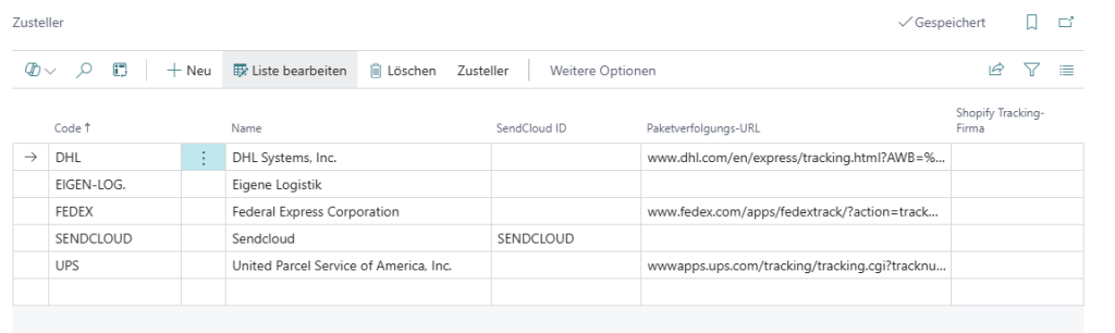 In den Zustellern mĂźssen die SendCloud Carrier eingetragen und zugeordnet werden. Ebenso wie die Zusteller-Transportarten.