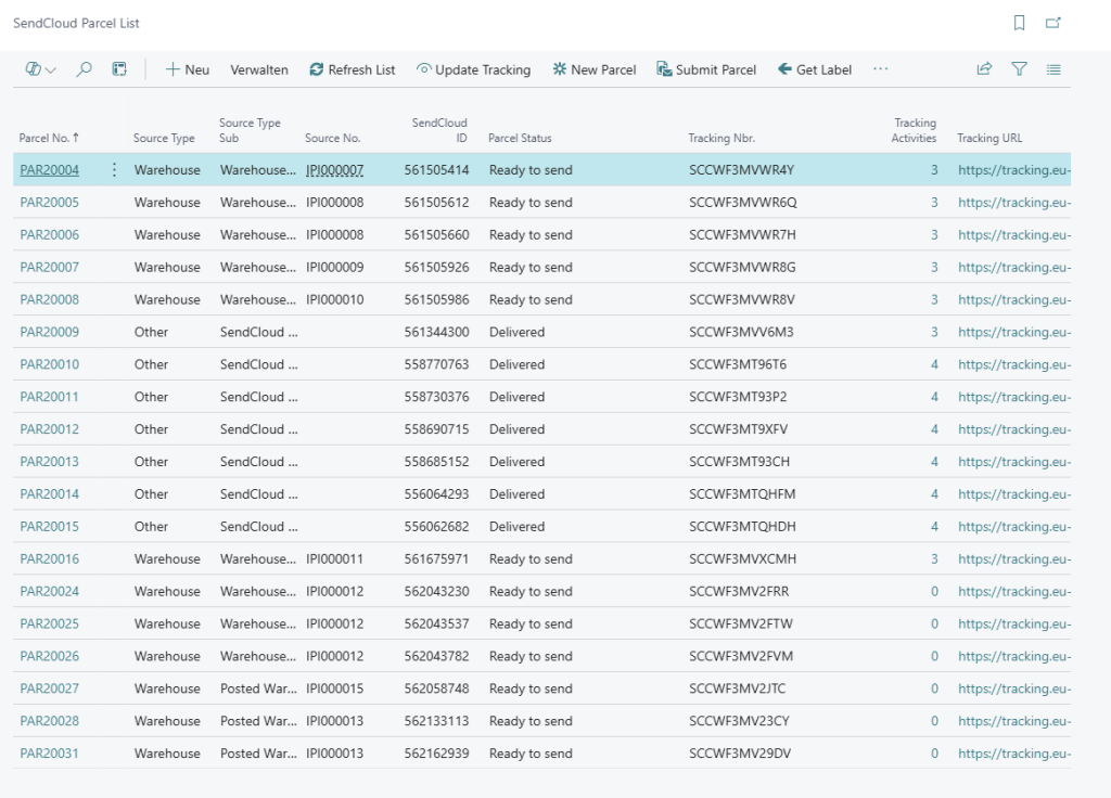 Und dann kann es auch schon losgehen. In der Parcel-Liste lassen sich neue Pakete anlegen, das Label herunterladen oder Pakete stornieren.