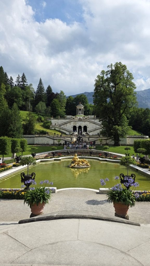 Die weitläufige Parkanlage bietet im Sommer viel Schatten und die wunderschönen Anlagen bringen einem wirklich zum Staunen. Besonders beeindruckend ist das Wasserspiel vor dem Schloss – die große Fontäne schießt zu bestimmten Zeiten bis zu 25 Meter in die Höhe. Für den Besuch von Schloss und Park sollte man mindestens 2–3 Stunden einplanen. Übrigens liegt Linderhof in unmittelbarer Nähe der Wanderung auf den Laber – eine schöne Kombination für einen ganzen Ausflugstag.